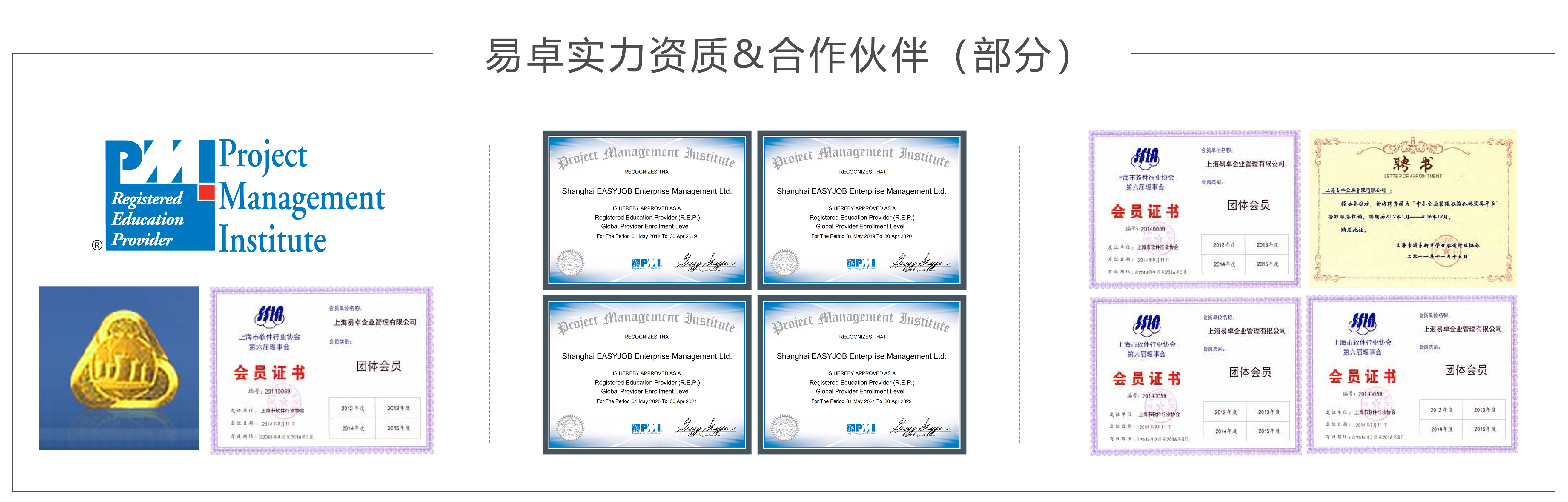 上海易卓公司,長期專注于項目化管理定制化培訓和嵌入式咨詢為核心服務方式,一站式全面滿足企業項目管理成熟度 的有效提升,且同步助力企業項目管理人才培養和勝任力提升,以及完善職場人士的項目化管理能力提升。因此,上海 易卓公司長期以來,均作為諸多知名企業組織和大量職場人士的培訓合作選擇。